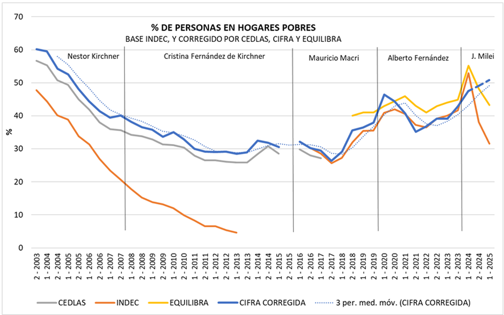El informe “La Pobreza de la Medición de la Pobreza”, basado en análisis de estudios del Centro CIFRA-CTA y otras consultoras independientes, revela que mientras el INDEC anunciaba descensos en la pobreza durante el segundo semestre de 2024 y primero de 2025, la realidad mostraba exactamente lo contrario: un aumento estructural que hoy proyecta una pobreza del 51% para 2025.
